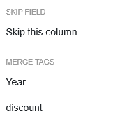 Within the mapping interface, you will associate columns from your file to merge tags within the email. If your file contains columns with data that you don't intend to use for the send, you may decide to skip the field.