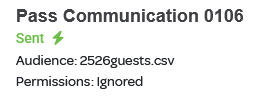 These Upload List emails will display with the status: Sent⚡. Emails that are sent via this method will display the name of the file that was uploaded at the time of the send and a permissions respected/ignored tag. Other reporting metrics, including opens, clicks, and unsubscribes, will be displayed as normal for these types of sends.