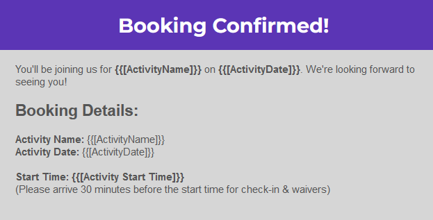Below is an example of sending a webhook-triggered email as a confirmation email for an activity booking.
